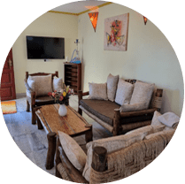 Das Gästehaus liegt in einer Anlage und somit in der Nachbarschaft von weiteren Häusern im afrikanischen Stil.